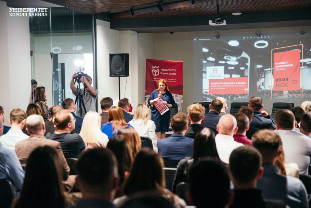 09 квітня 2024 року на базі Університеті Короля Данила за спільною участю Івано-Франківської міської ради, Івано-Франківської обласної ради, Івано-Франківського регіонального відділенням Асоціації міст України та Івано-Франківського НДЕКЦ МВС проведено науково-практичний семінар «Децентралізація в Україні: здобутки, проблеми, виклики, перспективи». Експертну службу на даному заході представляли заступник завідувача відділу криміналістичних видів досліджень – завідувач сектору почеркознавчих досліджень, технічного дослідження документів та обліку Ніна Тутецька, завідувач сектору дактилоскопічного обліку Христина Бдайцієва та судовий експерт відділу вибухотехнічних та пожежотехнічних досліджень Богдан Гамалюк. Метою науково-практичного семінару було обговорення реформи децентралізації влади в Україні на сучасному етапі, проблемних питань з фінансування організації та функціонування державних та комунальних установ в умовах воєнного стану та післявоєнної відбудови країни, а також перспектив реалізації децентралізаційних процесів відповідно до європейських принципів і стандартів. Участь у науково-практичному семінарі взяли представники органів державної влади та органів місцевого самоврядування, наукові та науково-педагогічні працівники, громадські активісти, студенти. Спікерами семінару стали: міський голова Івано-Франківська Руслан Марцінків, заступник голови Івано-Франківської обласної державної адміністрації з питань цифрового розвитку, цифрових трансформацій і цифровізації Богдан Футерко, міський голова Бурштина Василь Андріїшин, міський голова Надвірни Зіновій Андрійович, депутат Івано-Франківської обласної ради Василь Мельничук та виконавчий директор Івано-Франківського регіонального відділення «Асоціації міст України» Юрій Стефанчук. Під час науково-практичного заходу відбувся обмін досвідом з метою підвищення ефективності підготовки кадрів та підвищення кваліфікації для органів місцевого самоврядування, органів державної влади та наукових установ.