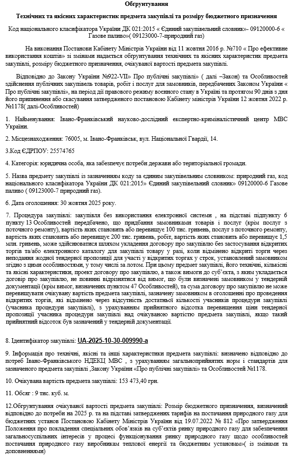 Опубліковано 31 Жовтня, 202531 Жовтня, 2025 автором ndekcifuaОбґрунтування до закупівлі за предметом закупівлі – Природний газ (код згідно ДК 021:2015 09120000-6 Газове паливо (природний газ)))